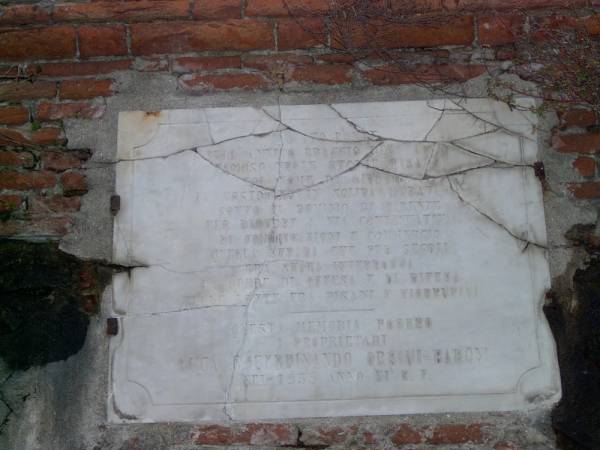 La lapide commeorativa fatta apporre nel 1933 dalla famiglia Orsini Baro...